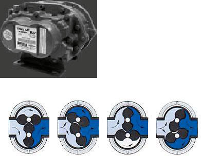 Estos sopladores consisten en dos lóbulos en forma de ocho montados sobre ejes paralelos, los cuales rotan en direcciones opuestas. Cuando el propulsor pasa por el interior del filtro, atrapa una pequeña cantidad de aire entre este y la carcaza del soplador impulsándolo hacia la tubería de descarga. Al final de cada eje hay engranajes para controlar la posición de cada lóbulo con relación al otro y así, se logra mantener las tolerancias necesarias para asegurar el máximo de eficiencia en los flujos de aire, mínimo balanceamiento y larga vida. |