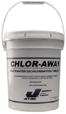 Las tabletas de decloracion CHLOR-Away ®, especialmente formuladas por JET Inc. Proporcionan una comodidad sin igual en la eliminación del cloro residual en forma eficiente y confiable.